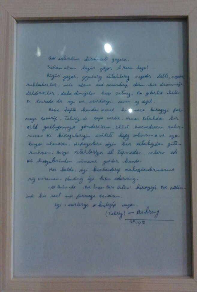 شنیدم که یکی از نویسندگان تلویزیون نوشته است که من در بچگی قصههای صمد را خواندم و خیلی دوست داشتم، اما نمیخواهم فرزندم این کتابها را بخواند. چون خشونت دارد و فلان…. اما من این نمایشگاه را برگزار کردم تا بگویم صمد خواندهام باز هم میخوانم و برای فرزندانم هم خواهم خواند و … و تمام تلاشم را میکنم که کتابهای صمد خوانده شود، منتشر شود، ترجمه و تصویرگری شود. ما ترکها یک ضربالمثل داریم که میگوید “قیش چیخار، اوزو قارالیق قیشا قالار” (زمستان میرود و رو سیاهی برای ذغال میماند.) اینها میروند، اما صمد میماند.